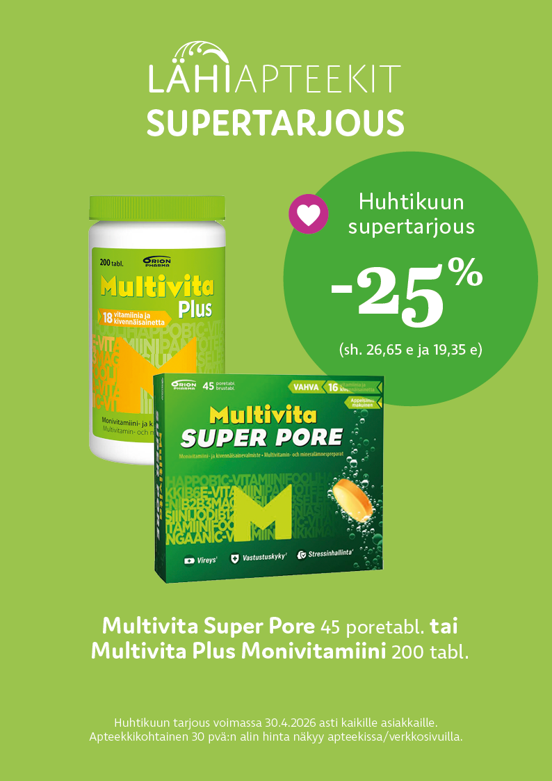 Kuulumme Lähiapteekit -ketjuun. Lähetämme joka toinen kuukausi ilmestyvän Lähiapteekit -lehden Säynätsalon apteekin lähialueille. Apteekkimme asiakkaana saat kuukausittain vaihtuvat tarjoustuotteet edulliseen Lähiapteekit -hintaan.